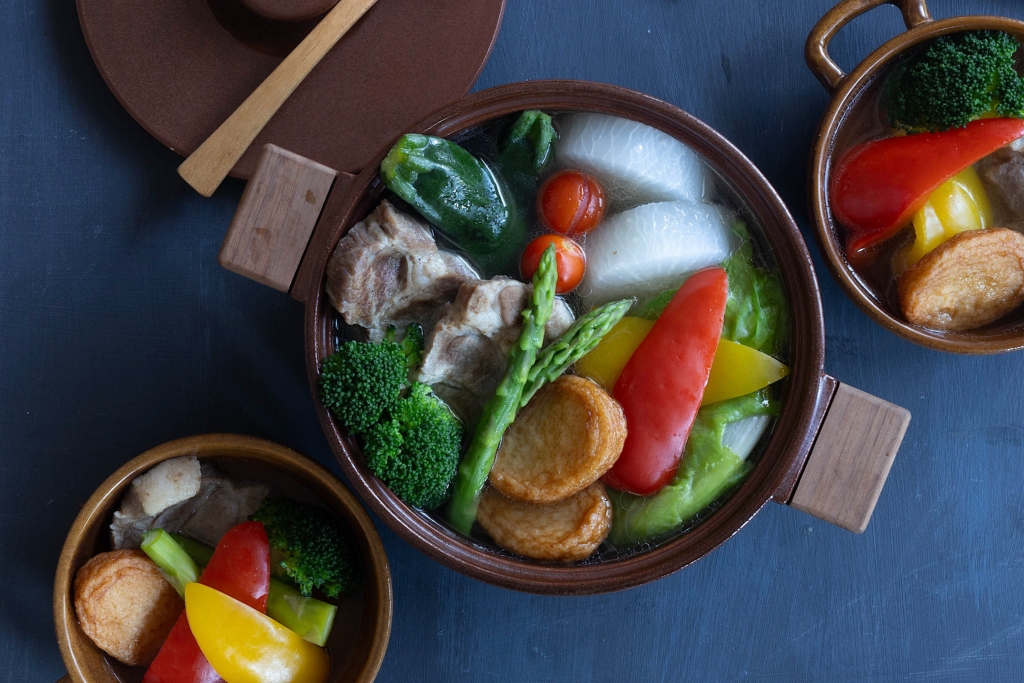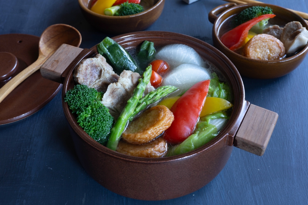 パプリカ、ブロッコリー、ズッキーニ、さつま揚げを加え、15分煮る。