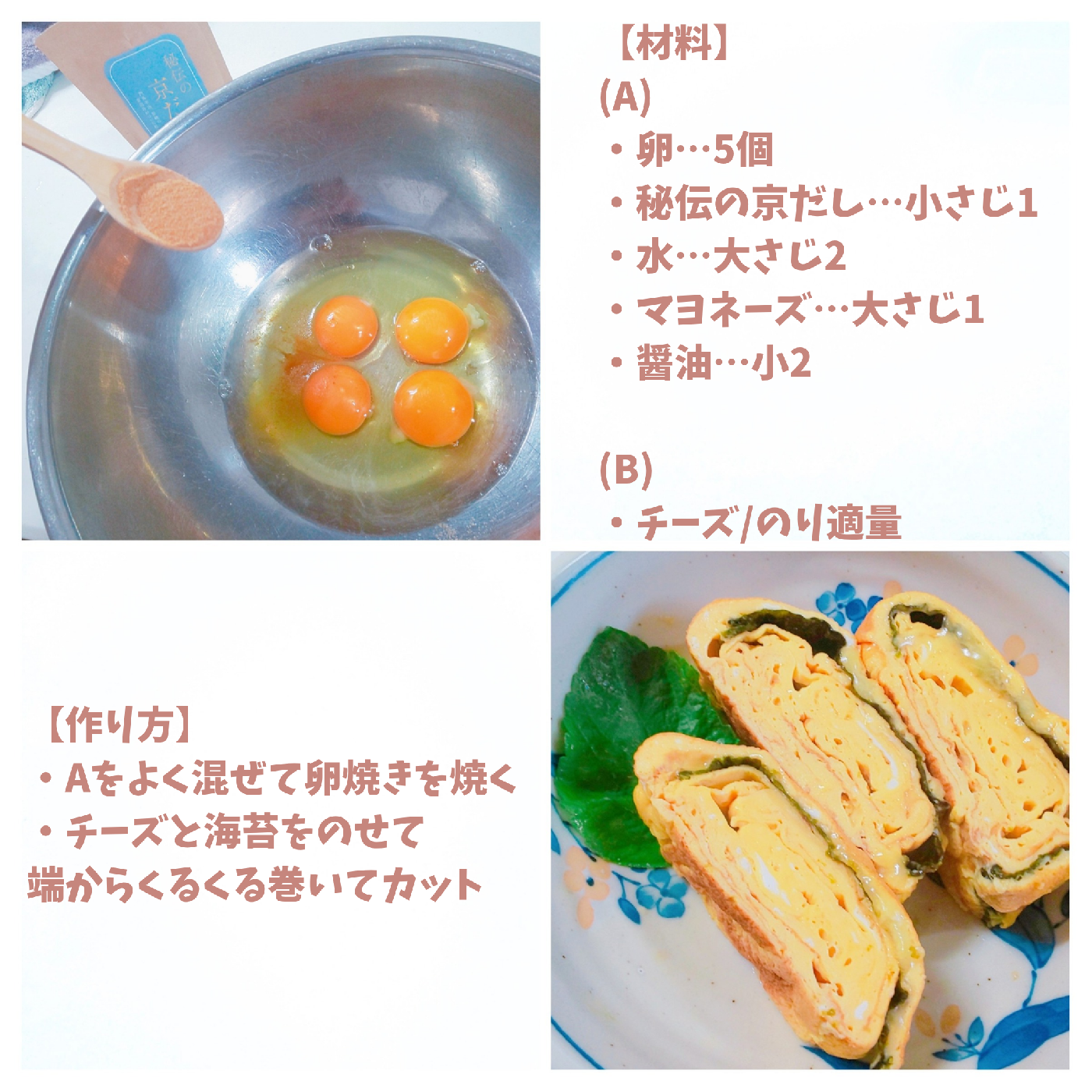 完成した〖海苔チーズ入りだし巻き卵〗は、チーズや海苔の風味にも負けない、しっかりとした出汁の味わいが楽しめて美味しかったよ❣️